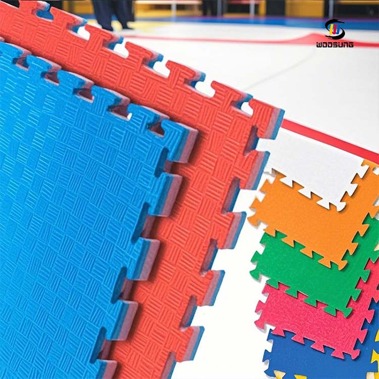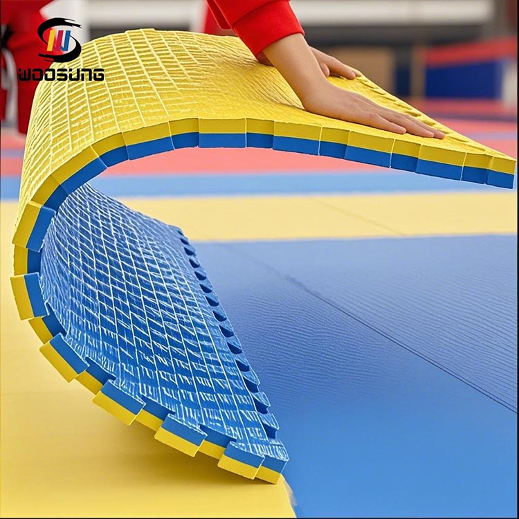 Als Experte für die Herstellung von Taekwondo-Tatami-Matten mit 25 Jahren Erfahrung im Bereich Kampfsportausrüstung beliefert WOOSUNG Dojos weltweit mit Bodensystemen, die internationalen Wettbewerbsstandards entsprechen. Unsere entwickelte EVA-Verbundstruktur mit ultrahoher Dichte löst die Probleme herkömmlicher Matten, die dazu neigen, sich zu verschieben und einen schnellen Elastizitätsverlust zu erleiden, und erzielt gleichzeitig eine deutliche Verbesserung der Umweltsicherheit.